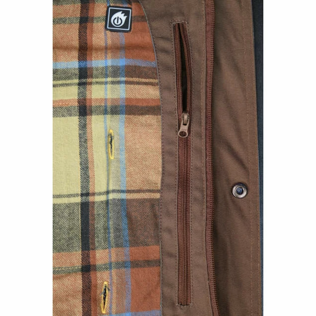 Built to withstand the cold and look good, the DEWALT® DCHJ083TD1 Heated Barn Coat provides hours of core body warmth and continuous heat. Three core heat zones and 3 temperature settings make the heat customizable to your needs. The heavy duty duck cloth outer shell is water and wind resistant. The fleece lining is warm and attractive. Feature rich, there are plenty of pockets to hold your tools and accessories while your working. Fully outfitted with a DEWALT® 20V battery, fast charger and DCB092 adapter. The USB power adapter can be used to charge your portable accessories.