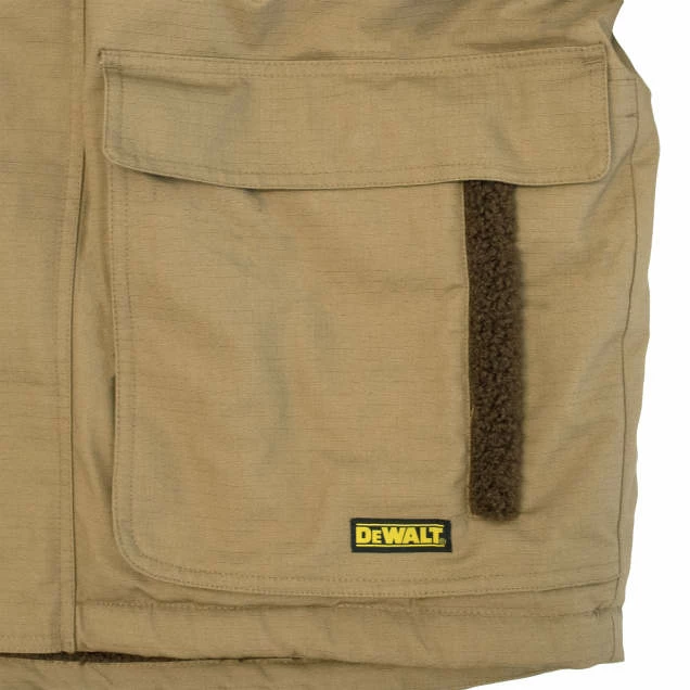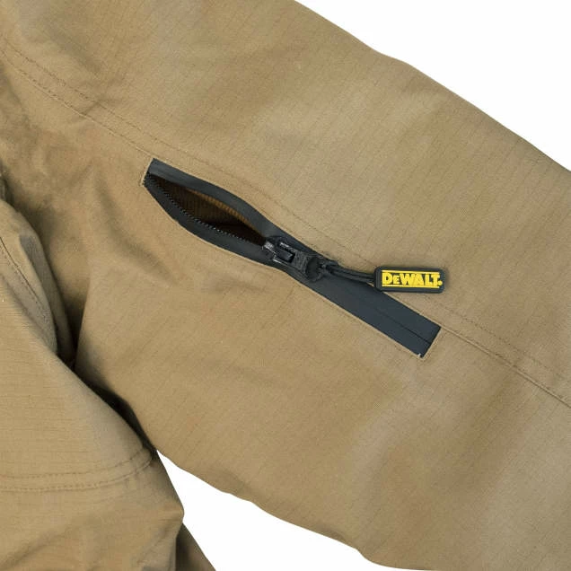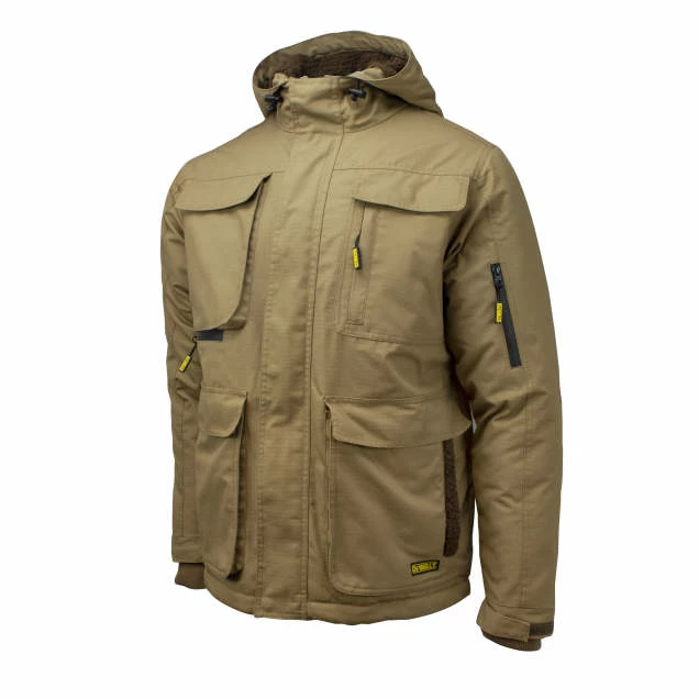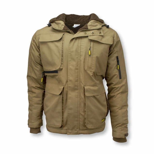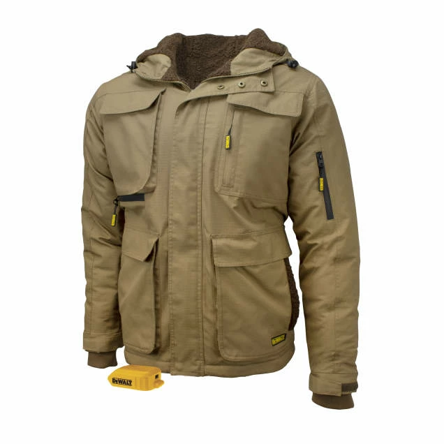 The DEWALT® DCHJ091 Men’s Heavy Duty Ripstop Heated Jacket provides hours of continuous heat with 3 heat zones and 3 temperature settings. The Ripstop outer shell and Sherpa fleece lining provide warmth and protection from cold environments. Pockets with snap closure flaps, zippers and waterproof zippers help to keep tools and accessories secure and your hands free to work. This item comes in Bare and Kitted versions. The Bare version can be used with your DEWALT 20V battery, and the Kitted version includes a 20V battery and charger. Both versions come with the DCB092 USB power adapter which can also be used to charge your accessories.
