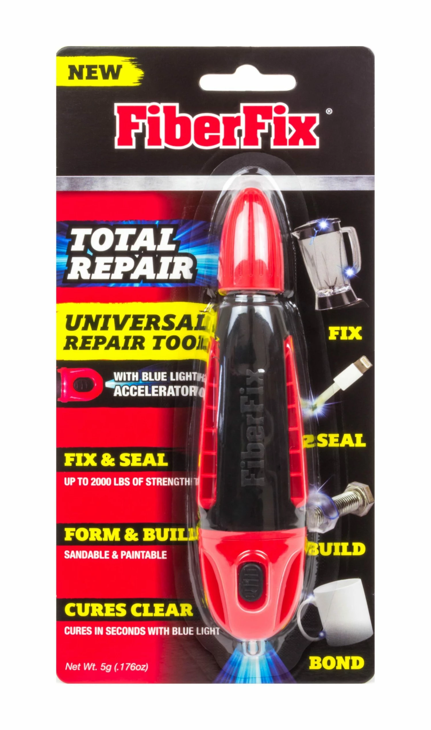 FiberFix Total Repair Glue introduces a specially formulated super glue gel that can be instantly cured by blue light. What’s even better is that the blue light is included! Use Total Repair to bond objects instantly, seal cracks and fill gaps in seconds, and rebuild broken sections of objects.