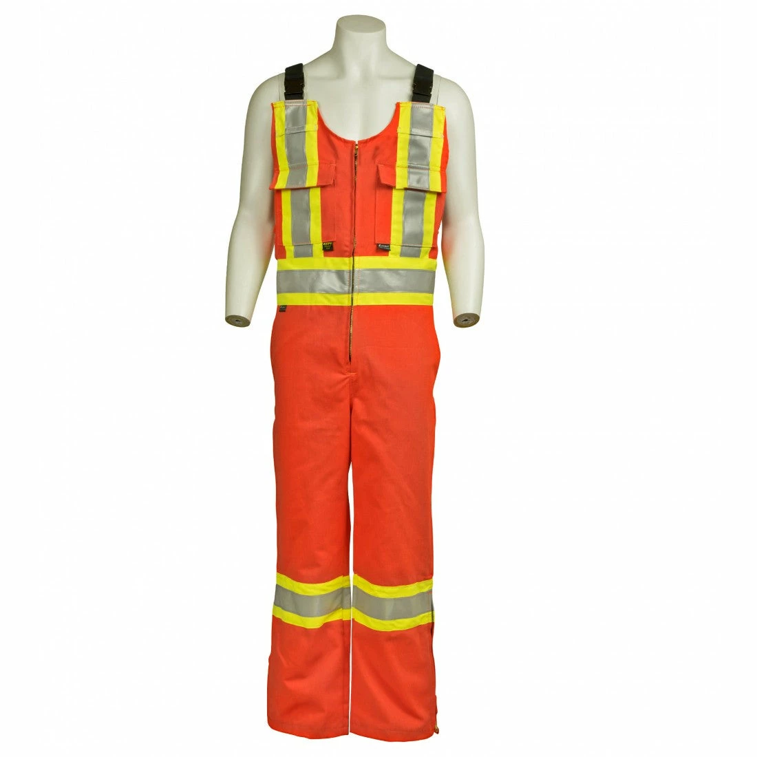 REFLECTIVE: 3M™ SCOTCHLITE™ SILVER REFLECTIVE MATERIAL 2 INCHES STITCHED ON 4” ENHANCED VISIBILITY TRIM: 2 VERTICAL ON FRONT (FROM SHOULDER TO WAIST), “X” ON THE BACK, ALL AROUND WAIST AND 1 HORIZONTAL STRIPE ON EACH LEG