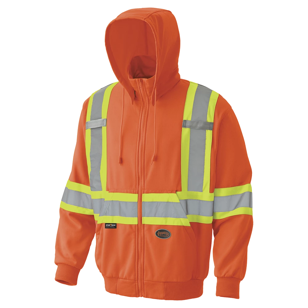 Pioneer Micro-Fleece Front-Zip Safety Work Hoodie is made with a soft 7 oz (240 GSM) micro fleece with 4-way comfort stretch to keep you warm and comfortable on the jobsite.