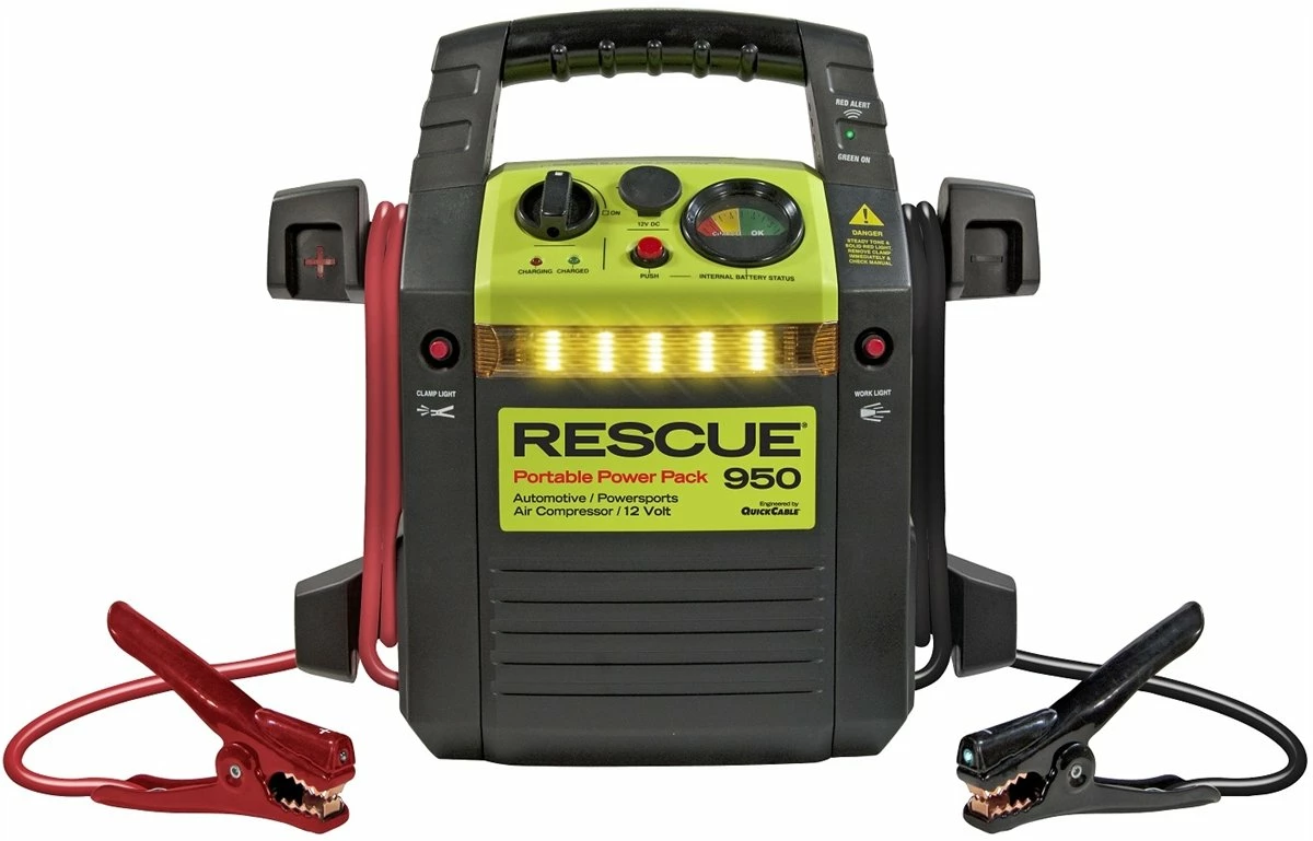 The RESCUE 950 is designed to deal with the two most common problems that keep you from where you want to go: a dead battery and a flat tire.