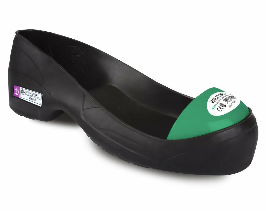 Wilkuro PVC Safety Overshoes adapt to all types of shoes and provide a temporary toe protection to help make your workplace safe. The PVC construction makes them resistant to many chemicals. These overshoes are ideal for casual or temporary workers, warehouse or factory visitors, salespeople, executives and any other persons entering an area where foot protection is required.