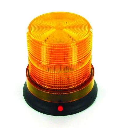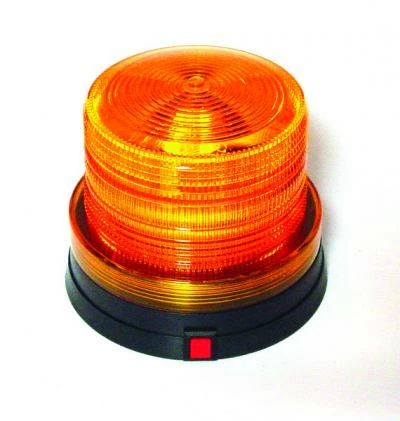Amber, 4 Diodes, Single Flash. Powered by 2 AA Batteries. Dimensions: 4″H x 43 ⁄4″ Base Diameter. On/Off Switch. Magnetic Mount